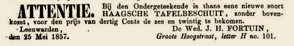 Zij zet de bakkerij onder de naam "Weduwe J.H. Fortuin", voort tot 1858.