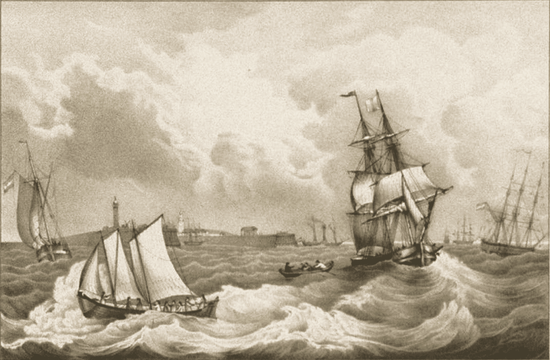 in eene ijssloep de haven van Helvoet verlatende tot redding van